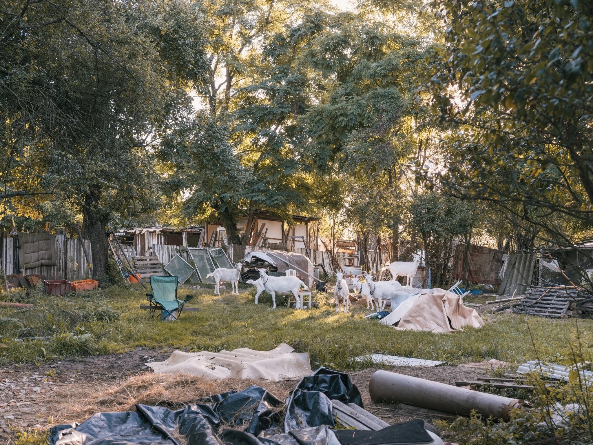 Vonia to tu špinou, no mám to tu rád. Okrem vtákov sem nalietavajú aj novodobí okresní nomádi, ktorí vycítili šancu na nerušený relax alebo poľnohospodársky potenciál pri práci s kozami, sliepkami, či ovcami. Zvieratá sú samozrejme strážené inými zvieratami, prevažne psami. Nanosili sem nový bordel, zahltili krajinu reklamnými dáždnikmi od českého piva, nerozumiem tomu, no asi ponúkajú najlepší tieň. Majú radi aj zelenú plachtu na pletivo (tzv. tieniaca sieť), ktoré sa potom javí ako nepriehľadné, no nedajte sa oklamať. Kto chce, vidí.