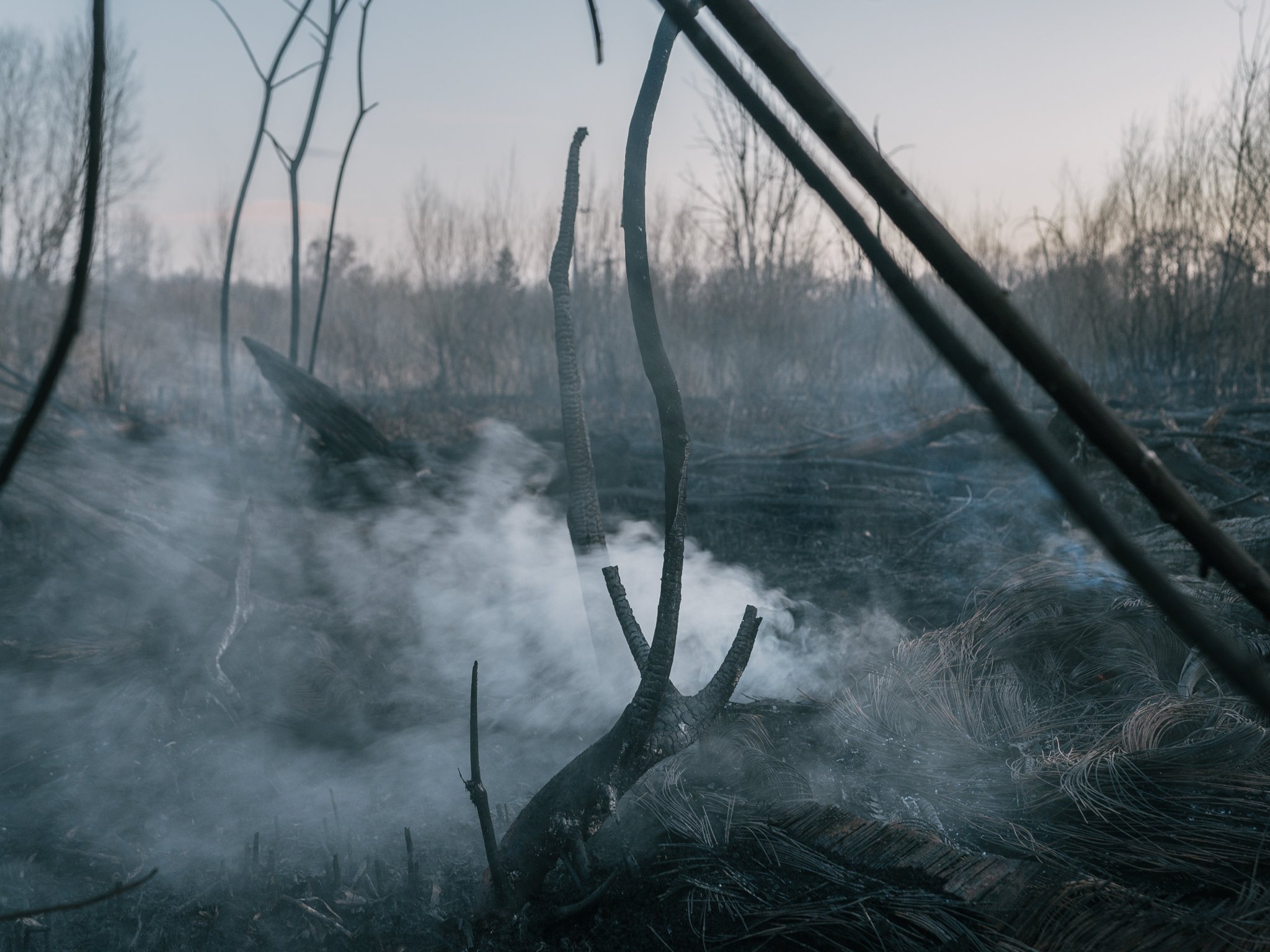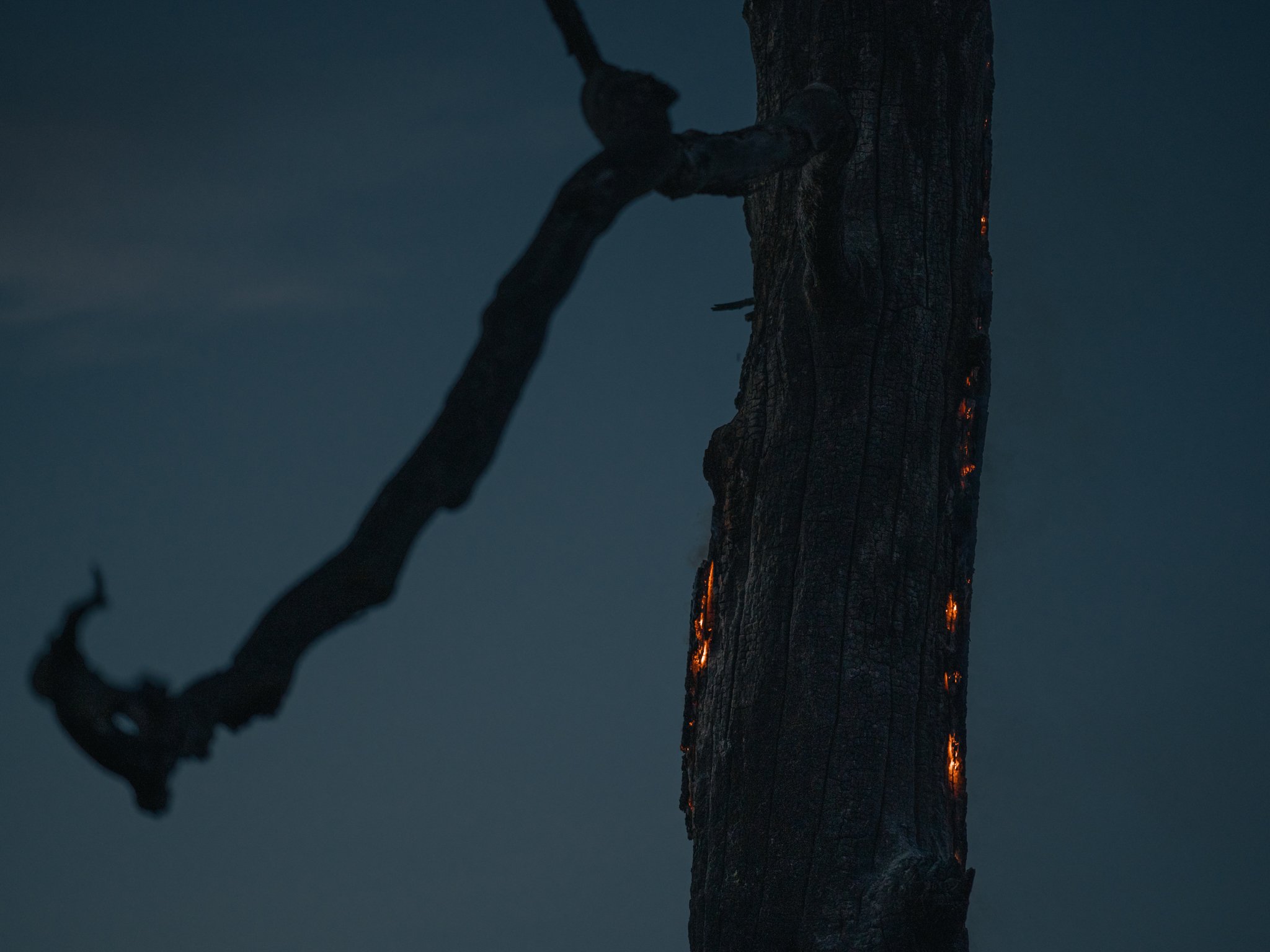 Ostal som tu sám, obklopený symbolmi sťahovavých vtákov. Opustené hniezda, opustené slimačie schránky, fragmenty príbytkov, základy domov. Som súčasťou ekologickej katastrofy a nového biotopu v jednom. Lietajú sem vtáky a dreviny, ktorým sa nerušene darí, pohltili všetok priestor. Spolu so smeťami, stavebným materiálom, ktorý už nikto nepotrebuje, s tehlami, murivom a bielymi kockami. Dať krajinu do pôvodného stavu.