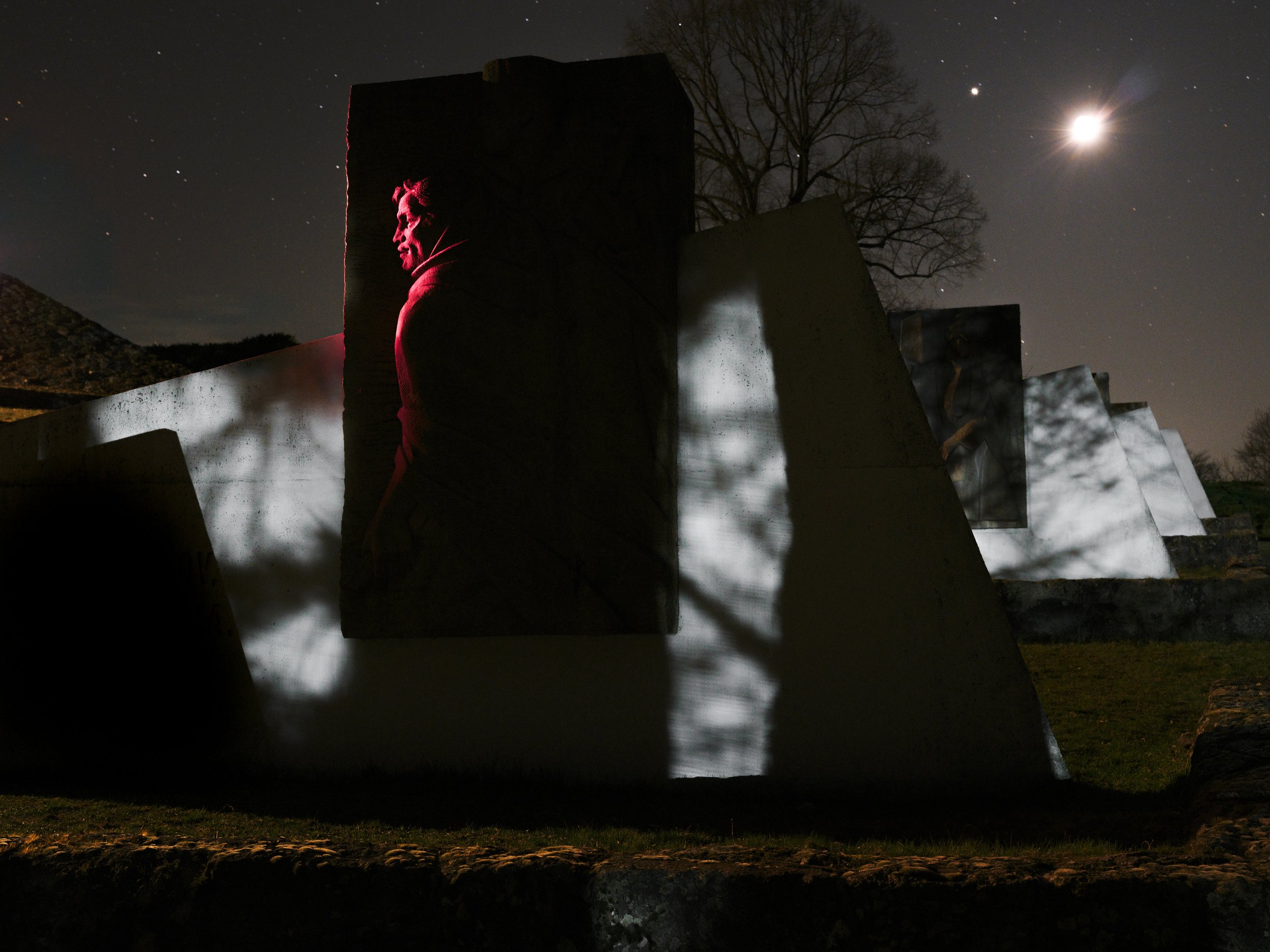 I recalculate the coordinates. I'm not sure if I got the right ones. I should find dialogue and progress here. I don't see them. Instead, I'm standing on frozen ground among the torsos of metal and concrete that once served as altars of power. The red light doesn't come from the stars, but from spotlights that illuminate the past to make it look glorious again. History is not being broken here—it is just slowly turning and showing the same face. Things are not moving forward, they are just changing color. The monuments remain, but they have changed tone. They no longer remind—they command. Instead of warning, they now order. The concrete is silent, but it serves again. Silence is not peace. It is only a premonition of noisier times. A nation that cannot admit what it has already experienced is doomed to experience it again. This land is not a place on the road today. It is a place of return. And I just recalculate the coordinates and hope that this is not the right location.